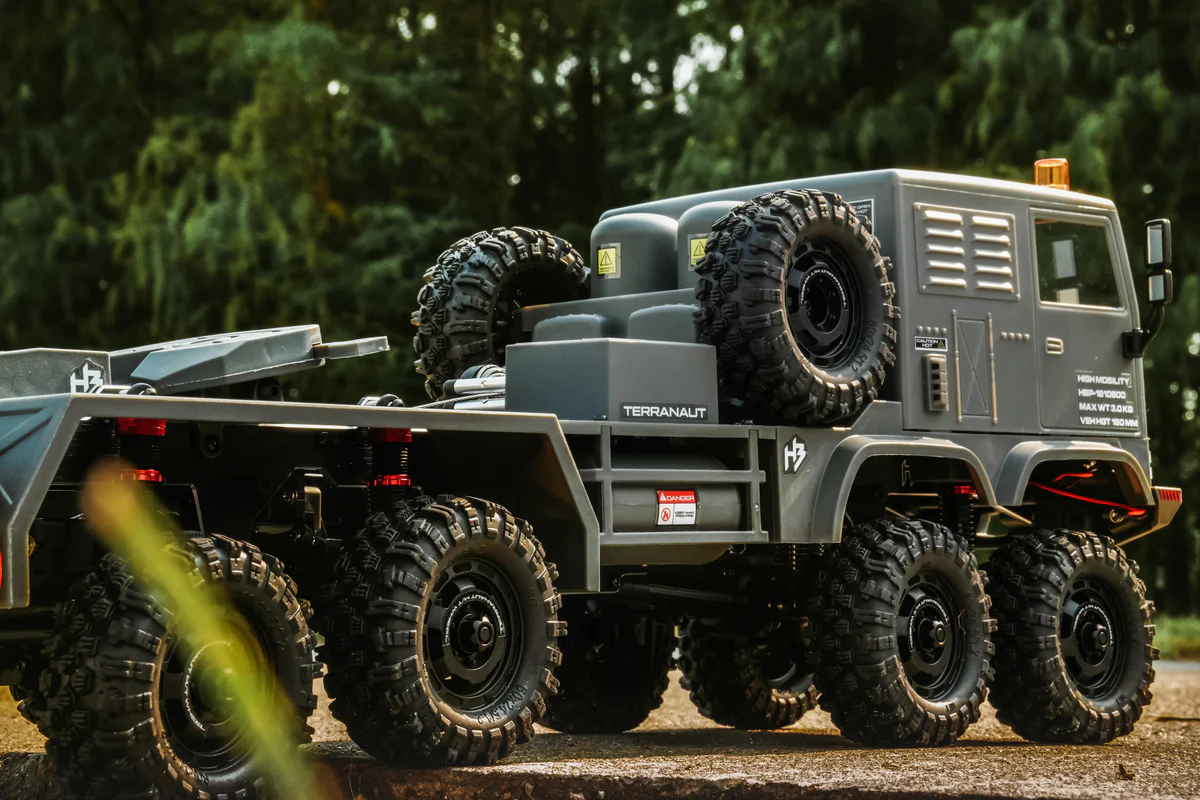 The Terranaut combines a true-to-scale appearance, outstanding steering performance, and realistic rescue/towing functions. Built on the globally acclaimed CR18P platform, the Terranaut 8×8 is ready out of the box with formidable terrain-conquering power.
