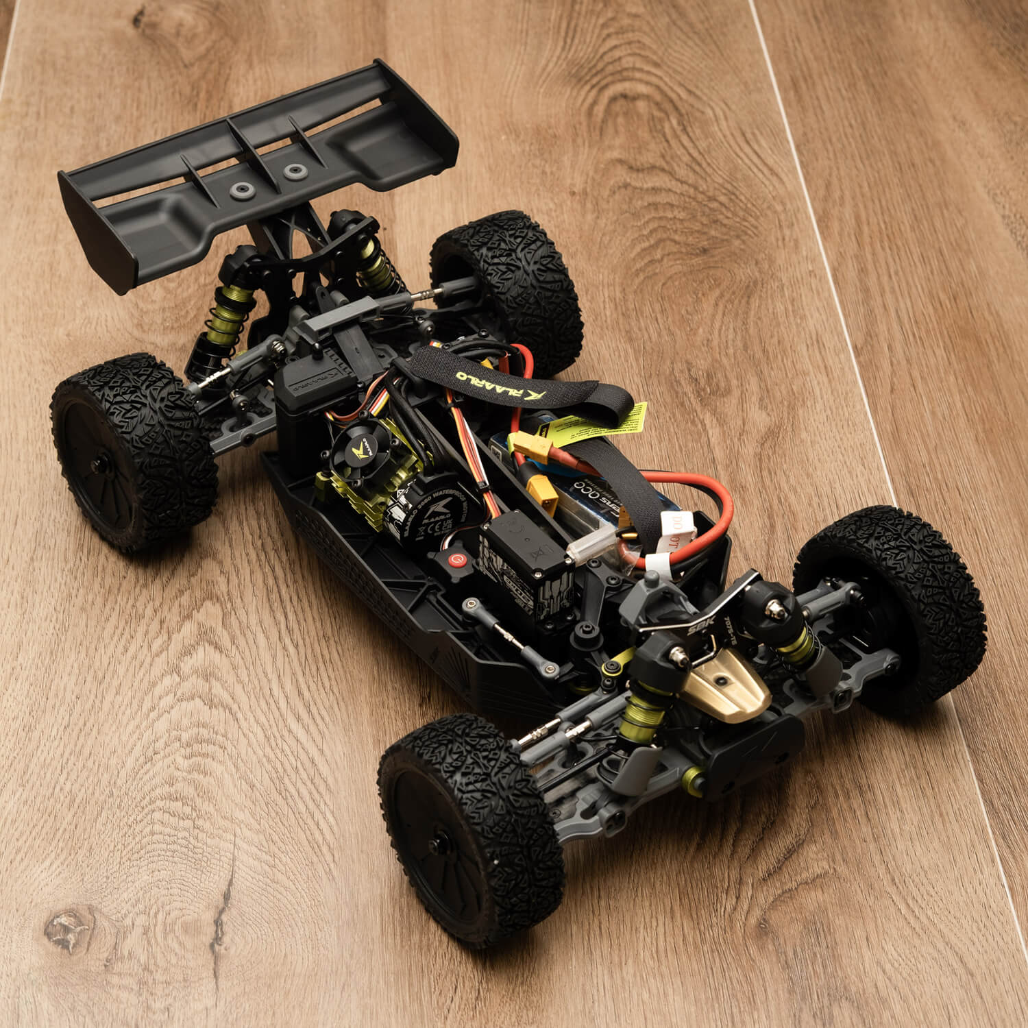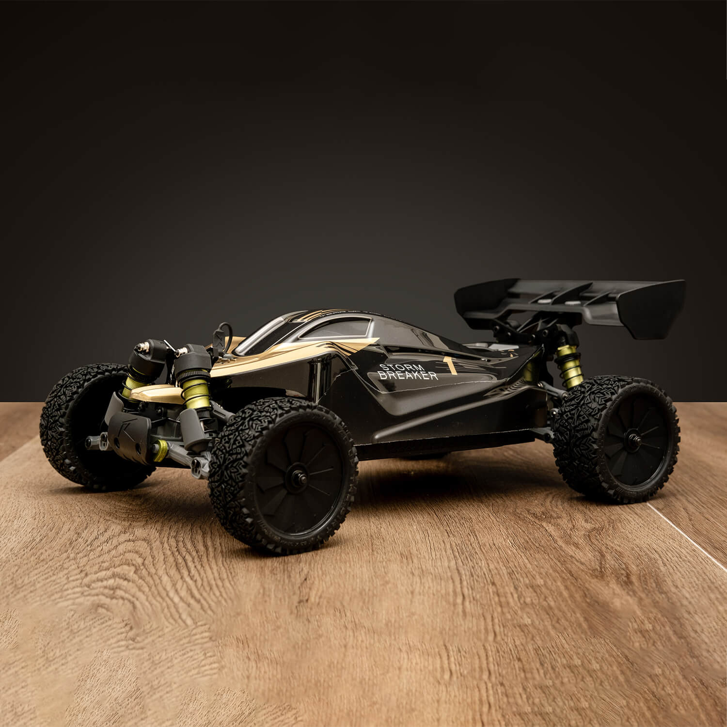 This buggy also includes a 2.4GHz 4-channel transmitter with a range of over 300 meters and very fast response time (≈ 0.1 s), giving precise, lag-free control.